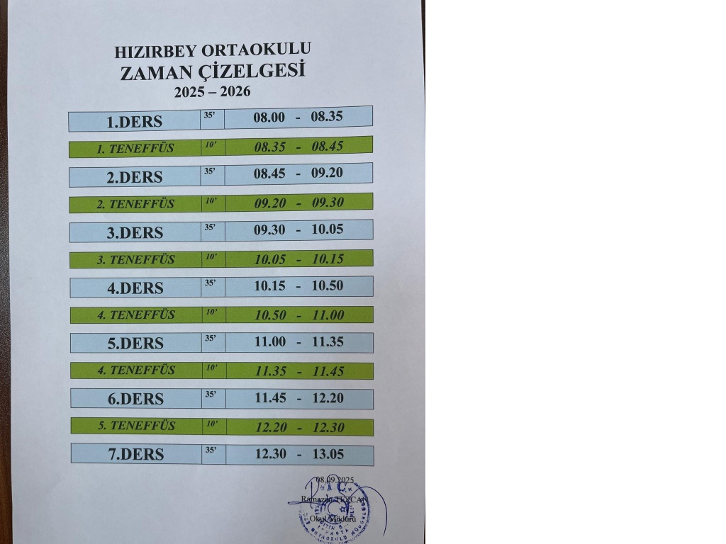 2025/2026 EĞİTİM ÖĞRETİM YILI VAKİT ÇİZELGESİ
