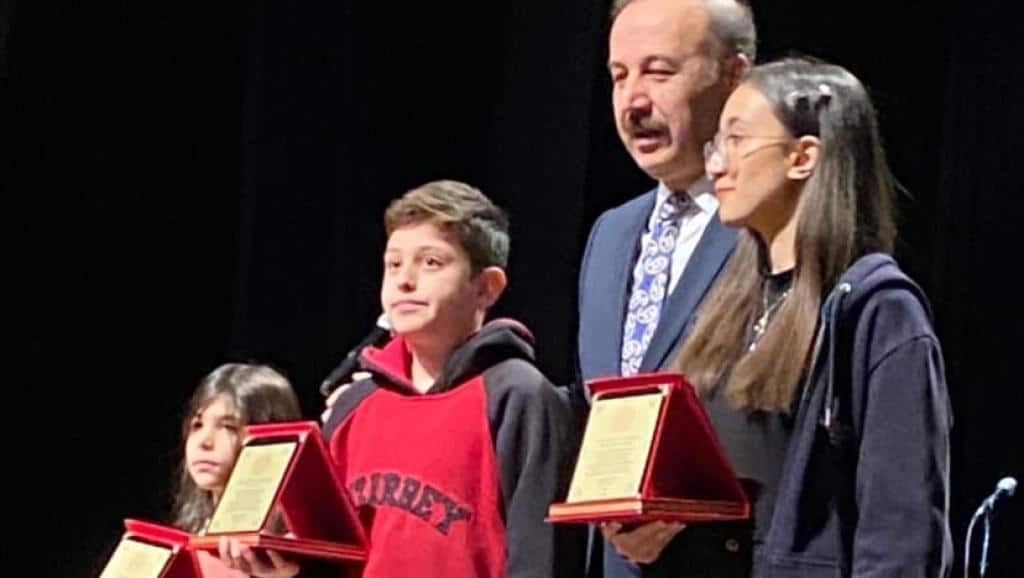 24 Kasım Öğretmenler Günü nedeniyle düzenlenen ortaokul öğrencileri arası şiir yarışmasında öğrencimiz Mehmet Eren DEMİR büyük başarı göstererek İL BİRİNCİSİ oldu. Öğrencimizi ve emeği geçen öğretmenlerimizi tebrik ediyoruz. Öğrencimiz ödülünü 24 Kasım Öğretmenler Günü programında valimiz Sayın Abdullah ERİN’in elinden aldı.